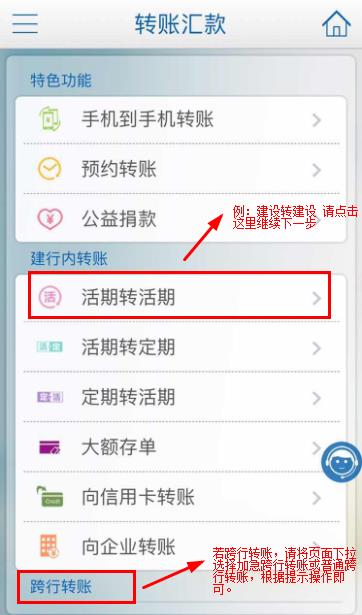 第二步:选择建行内转账--活期转活期